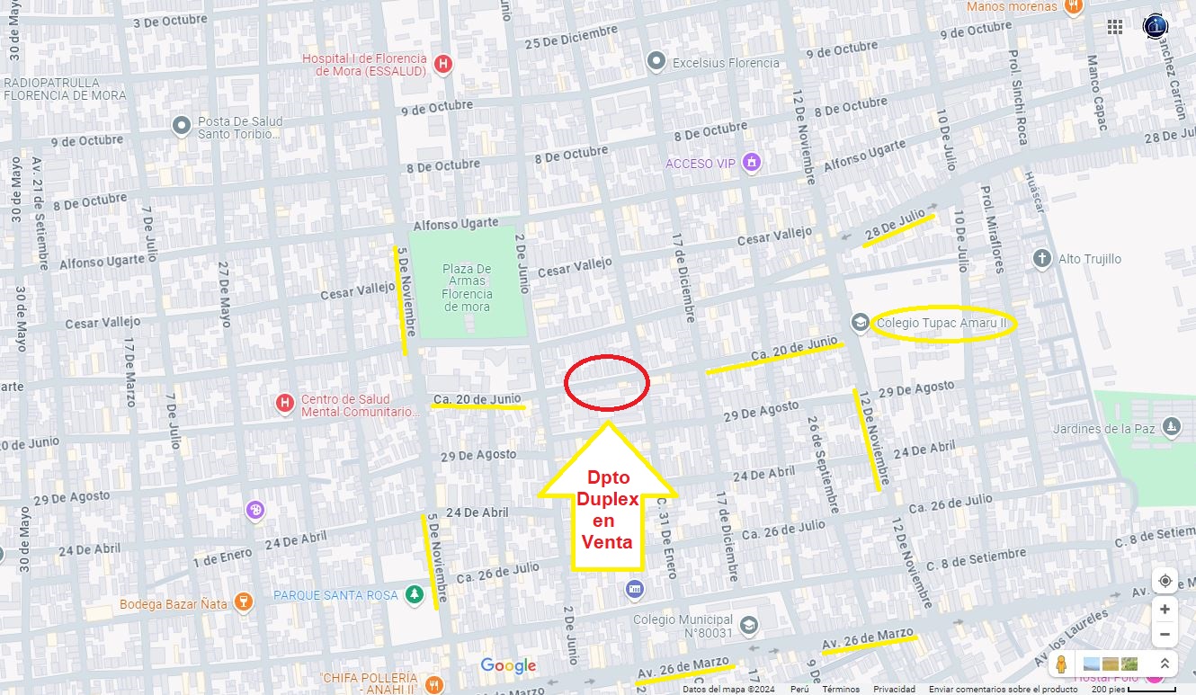 Mantyobras Inmobiliaria tiene a la venta un DEPARTAMENTO dúplex con azotea ubicado en Calle 20 de Junio cuadra 8, a una cuadra y media de la Plaza de Armas Florencia de Mora, Distrito de Florencia de Mora, Provincia de Trujillo y Departamento de La Libertad. El inmueble ocupa el primer y segundo piso de una casa de 2 pisos, con frente a calle (3.87m), ubicado en el Barrio 2, cerca de la Municipalidad de Florencia de Mora , de la Plaza de Armas y a 3 cuadras del Colegio Tupac Amaru II. Inmueble independizado bajo el régimen de propiedad exclusiva y propiedad común. El departamento cuenta con GAS. Distribución: Sala, comedor, cocina, 2 dormitorios, 2 baños, terraza. Principales vías de acceso: Calle 20 de Junio, Av. 12 de Noviembre, Av. 28 de Julio, Av. 26 de Marzo, Av. 5 de Noviembre, entre otras. Área techada: 96.31 m2 Área ocupada: 152.77 m2 1er Piso: A.Ocupada:39.85m2, A Techada:39.85m2 2do Piso: A.Ocupada:56.46m2, A Techada:56.46m2 Azotea: A.Ocupada:56.46m2, A Techada:0m2 Precio de venta: USD $ 32,250 Mayor información en ventas@mantyobras.com o a los celulares: 960174599 – 941104546 COD: GCAG-0326-LCJSLS |