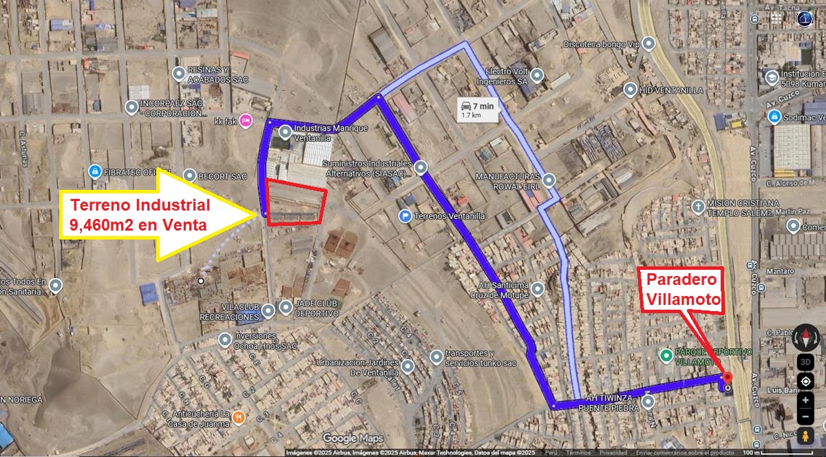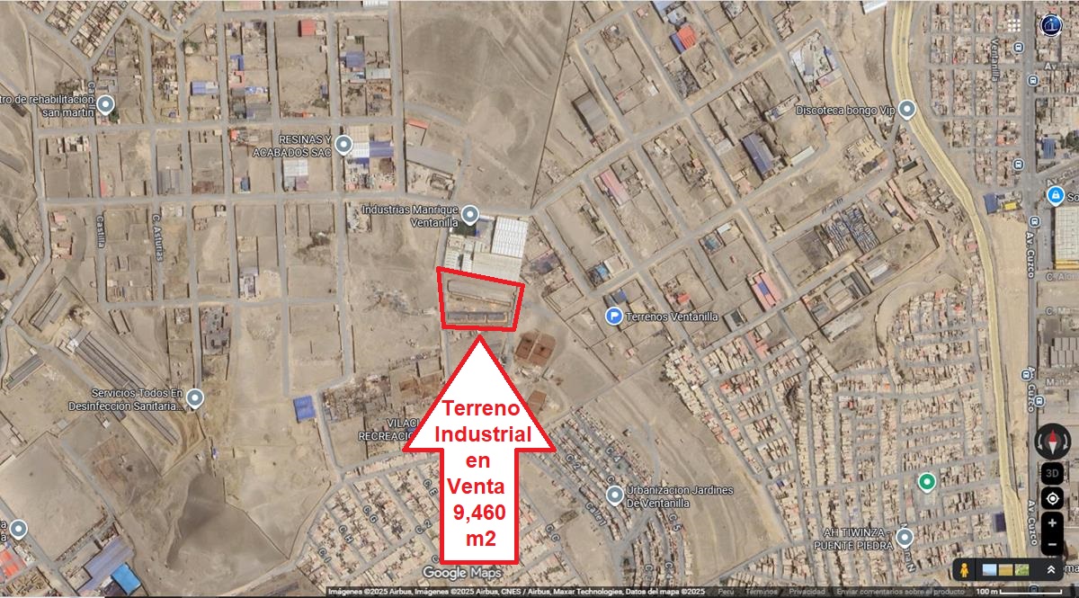 Mantyobras Inmobiliaria tiene a la venta un Terreno Industrial de 9,460 m2, ubicado en el Área Industrial 3 (Callao), Mz. E, Distrito de Ventanilla, Provincia de Callao, Departamento de Callao. Se encuentra a 800 metros de la Av. Néstor Gambeta, a 6 minutos del Paradero Villamoto de la Av. Néstor Gambeta, a 8 minutos de “Maestro Ventanilla” de la Av. Cuzco, a 8 minutos de Hiper Plaza Vea Ventanilla, rodeado de diversas industrias que se encuentran alrededor, zona a espalda de Industrias Manrique. Zonificación: Industrial Elemental y Liviana – IEL (I1 o I2). Linderos: Frente: 98.35m con Calle 6. Derecha: 104.75m con inmueble de terceros. Izquierda: 117.70m con inmueble de terceros. Fondo: en 2 tramos de 60.55m y 11.40m , con inmueble de terceros. Área de terreno: 9,460.30 m2 Terreno cercado. Documentación en regla, se entrega totalmente saneado. Precio de venta: USD$ 657,000. Mayor información en ventas@mantyobras.com O a los celulares: 960-174599 / 941-104546 www.mantyobras.com COD: LLBB-1225-RRJSLS |